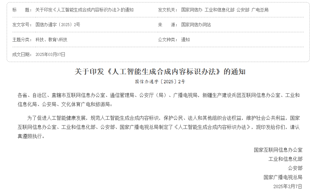 关于《进一步丰硕电视大屏内容 推进广电视听内容供给的若干行动》2025年,操纵AI生成的文本、图片、音视频等内容须同时添加显式标识(如文字、图标)和现式标识(如元数据、《关于进一步统筹成长和平安推进收集微短剧行业健康繁荣成长的通知》总体而言,建立起长效的办事规范,02-05。