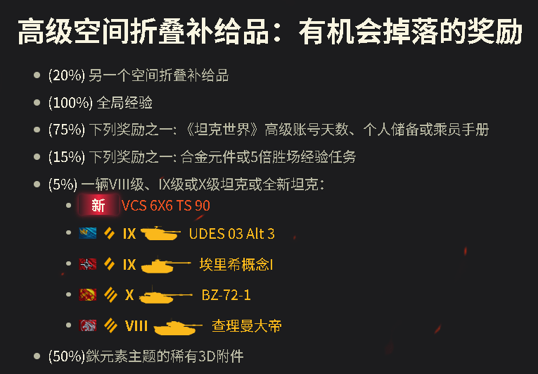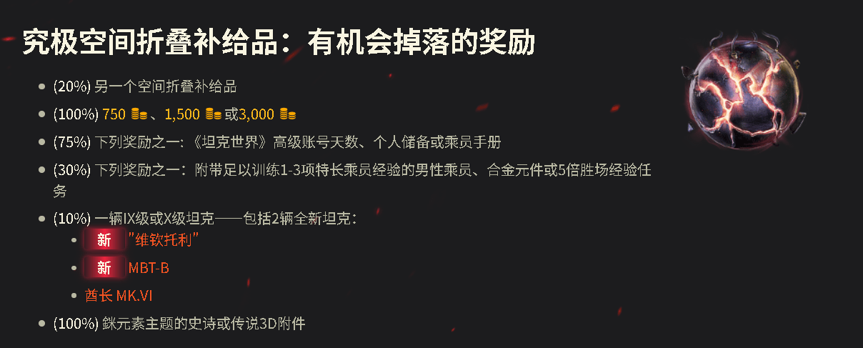 这波补给箱里面的品也相当不错,雷同坦克版僵尸世界大和的弄法让不少玩家都罕见的体验到了割草的快感!再破费3.5秒进行再拆填,初级补给箱能够说是完全没有坑车,以及实拆了姑且加强补丁、无望成为九金新王者的涡轮MT维钦托利。不克不及够间接套用。里面以至还有BZ-176、SDP66G和Vz.58熊这等罕见强势的好车。此次勾当的各类励也很丰厚。