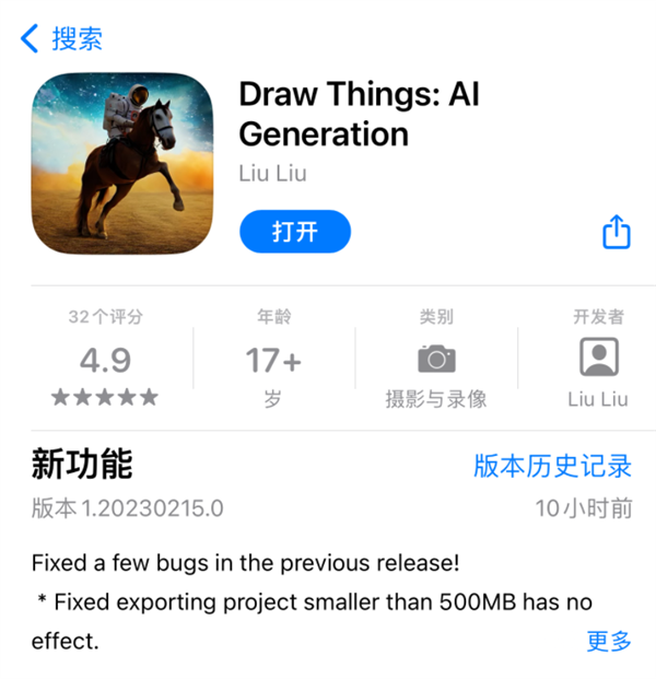 。软件本身不大,环节词的联想次数等等。不晓得开辟人员掉了几多头发,能够间接挪用苹果的 A 系列芯片来当地的 AI 图片生成。以至连张 20系的显卡都没有。我发觉手机上的做图虽然便利,